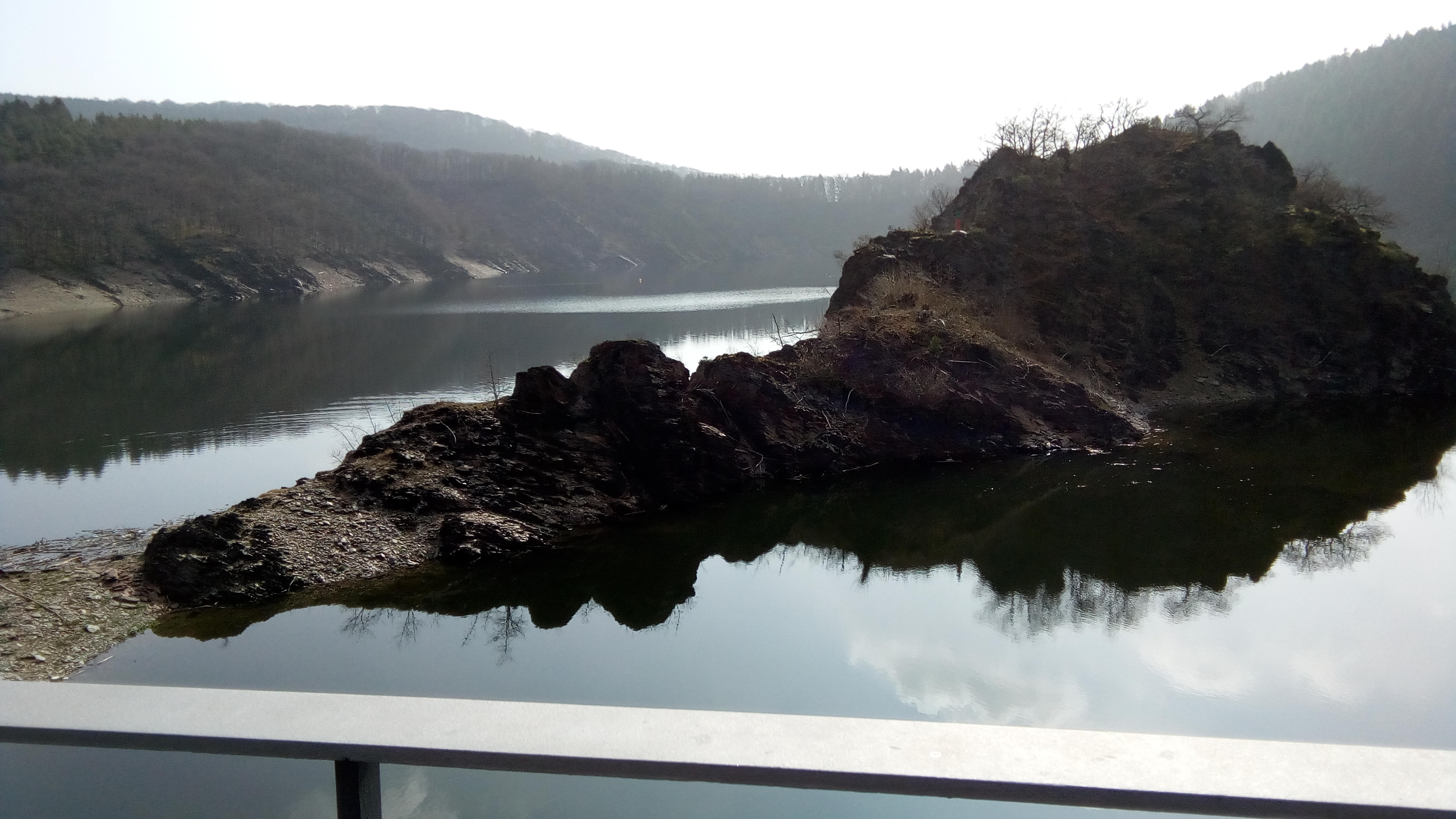View from the top of the hill at the timeshareRiver Rur view down side of the damRiver Strada Bianch, how do you say that in German, trailReservoir at the dam, largest in Europe, info guy said?Trail signsLuch stop in Woffelsbach, Pork medallions in musroom gravey, yumBird Viewing deck along the river Rur